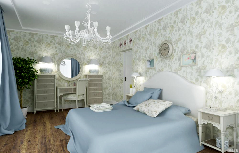 Начнем рассматривать вопросы об отделки, наиболее важных деталей. Натуральные предметы интерьера – одна из самых важных деталей в планирование стиля прованс и не нужно каждый предмет доводить до состояния идеал. Все должно быть очень лаконично. При штукатурке стен можно делать грубоватые моменты, которые будут только украшать спальню. Для того, чтобы создать деревенскую красоту, нужно использовать в декорирование шероховатые стены. А в выборе мебели можно купить спальню в Бишкеке в готовом варианте для данного интерьера. Что касается стен, можно так же использовать обои, только обращайте внимание на выбранный Вами цвет.  А также можно декорировано покрасить стены, дизайн так же подбирайте в светлых тонах.   Всем известно, что лучшее украшение стиля прованс - это цветы. Их можно использовать при нанесении на стены путем трафарета.